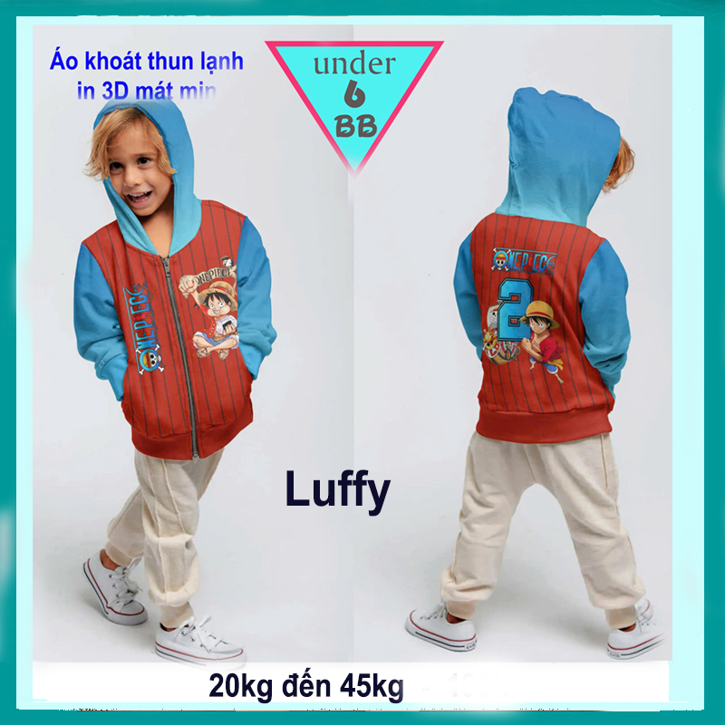 Áo khoác bé trai hoạt hình ( Vải thun lạnh ) in họa tiết hình Luffy cho bé đi nắng