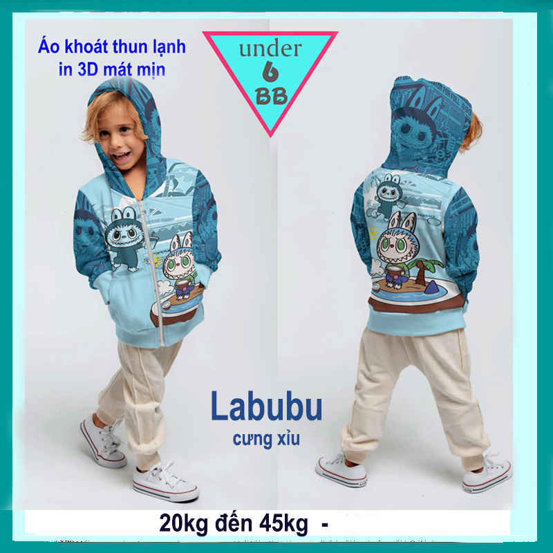 Áo khoác bé trai hoạt hình ( Vải thun lạnh ) in họa tiết hình Lababu cho bé đi nắng