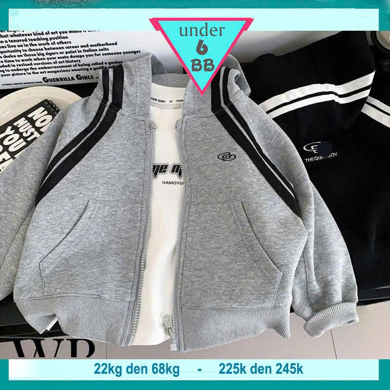 Áo khoác bé trai thêu chữ cá tính phối viền tay áo phong cách cực cá tính cho bé đi chơi , đi học