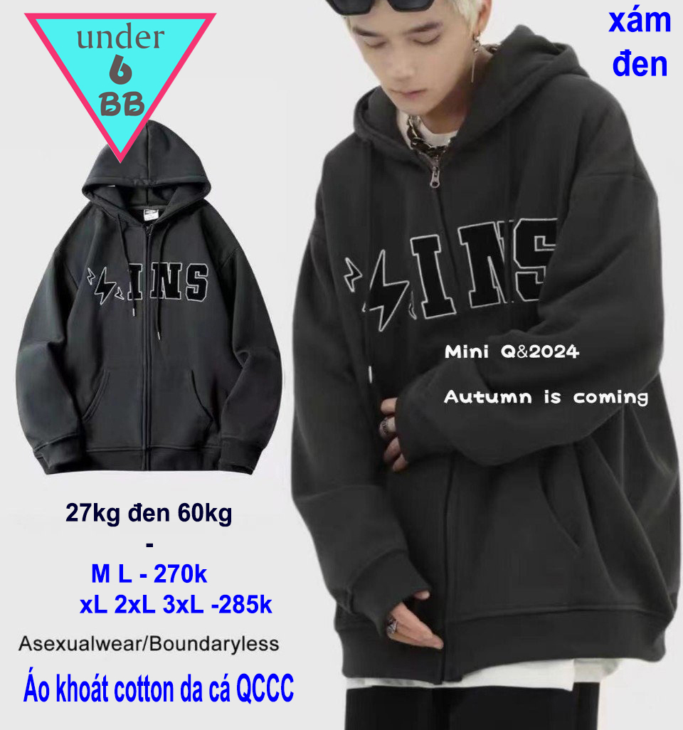 Áo khoác bé trai ( xám đen ) cotton da cá cao cấp thêu chữ cho bé đi chơi , đi học
