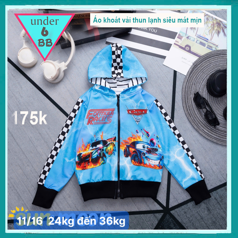 Áo khoác bé trai hoạt hình ( Vải thun lạnh ) in 3D hình xe hơi cho bé đi nắng, giữ ấm cho bé
