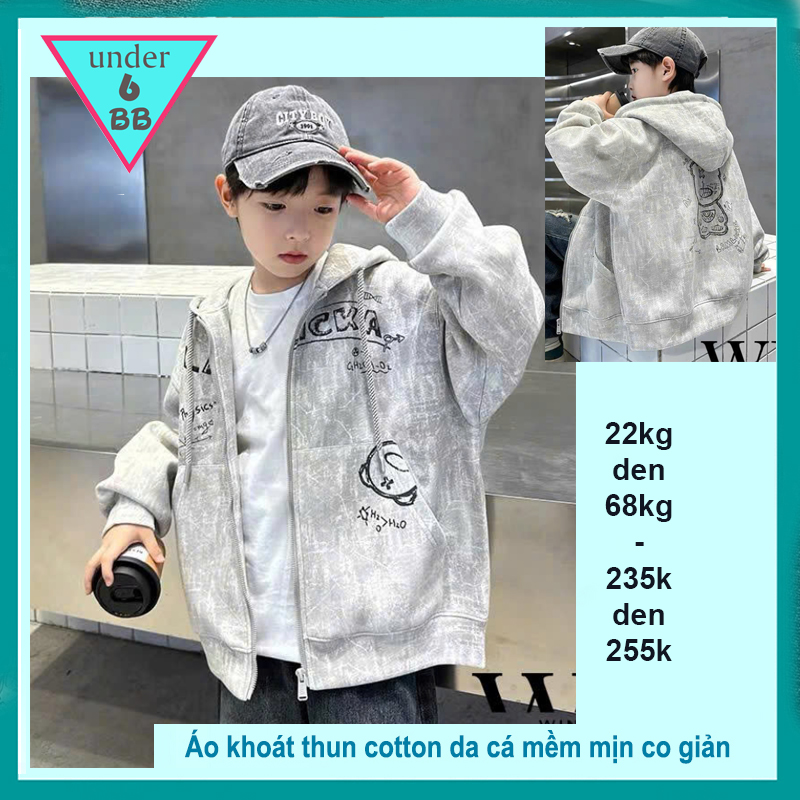 Áo Khoác bé trai in Chú Gấu phong cách cá tính cho bé khoác nắng , giữ ấm