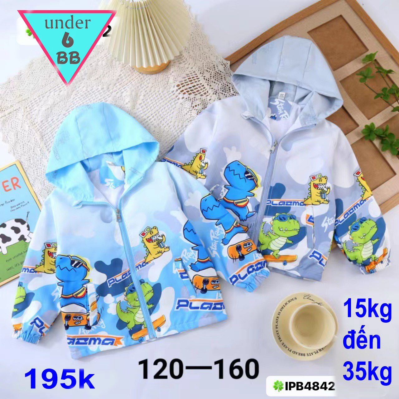 Áo khoác dù bé trai cao cấp ( xám ) in hình chú Khủng Long siêu đáng yêu cho bé đi chơi ,đi học