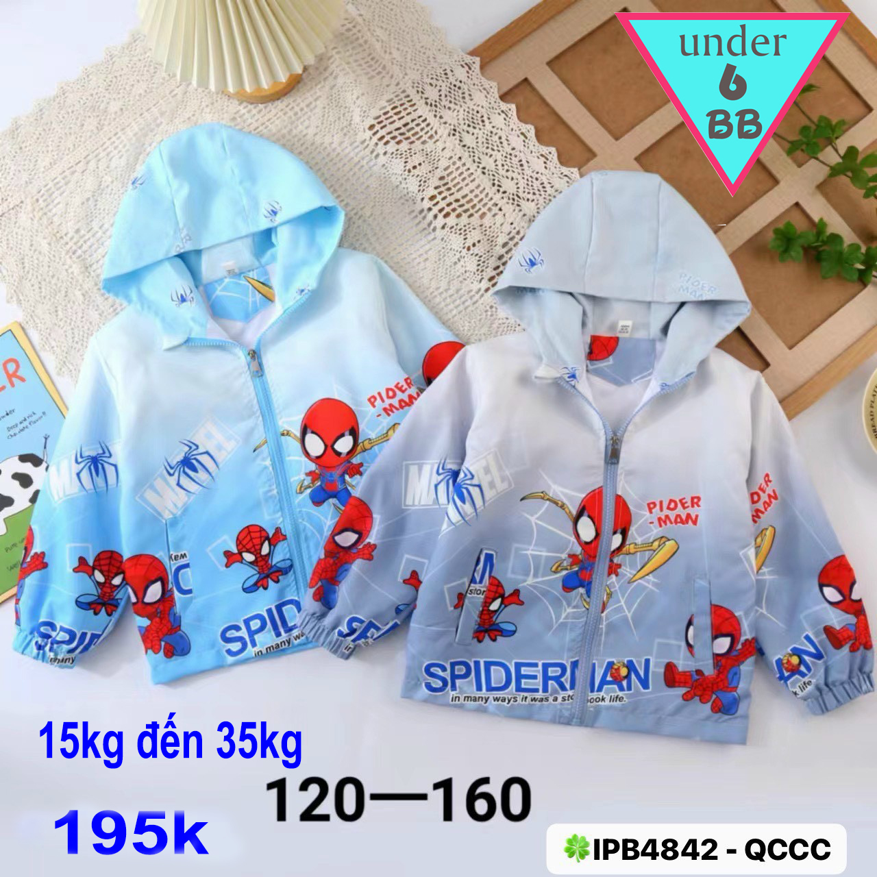 Áo khoác dù bé trai ( màu xanh ) in hình siêu nhân người nhện - Spiderman cho bé đi chơi , đi học
