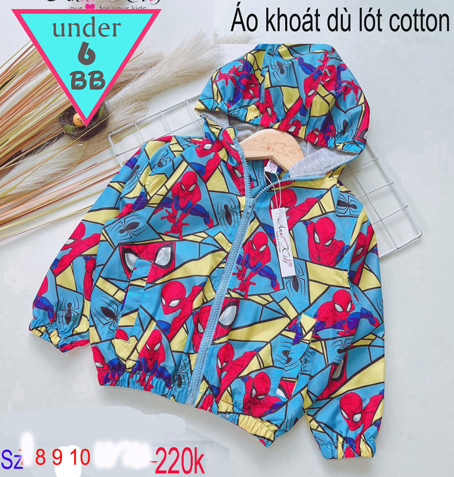 Áo khoác dù bé trai in hình siêu nhân người nhện - Spiderman cho bé đi chơi , đi học