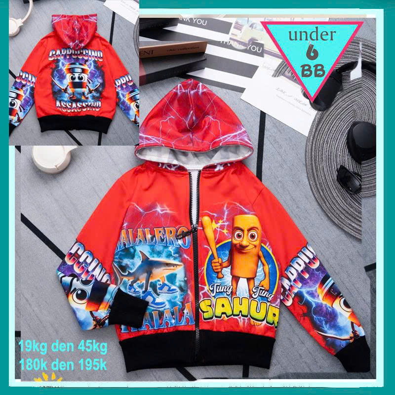 Áo khoác bé trai in hình Tung Tung Tung Sahur siêu hottrend cho bé khoác nắng , giữ ấm