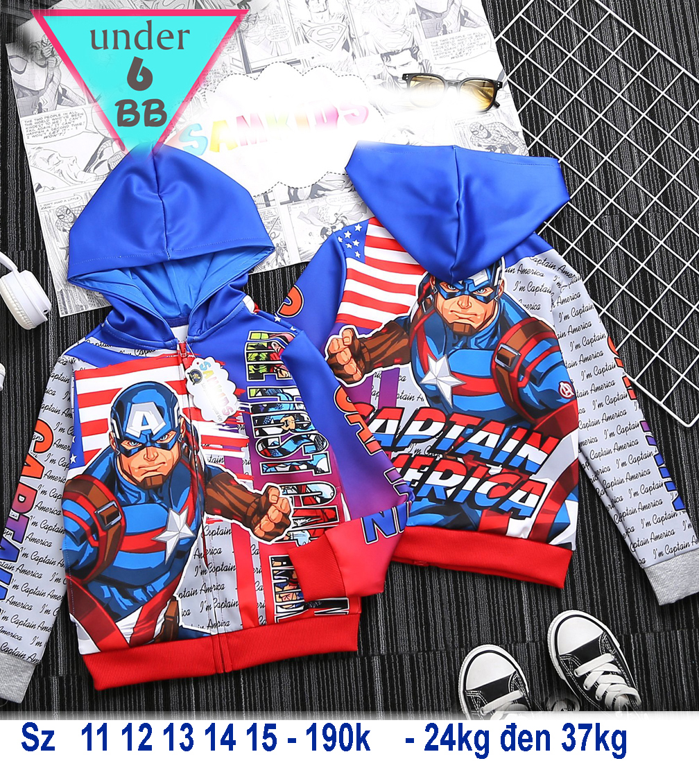 Áo Khoác bé trai in 3D hình Đội Trưởng Mỹ cho bé đi chơi , đi học