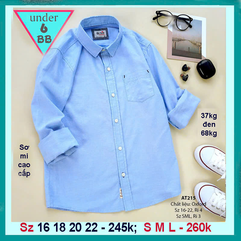 - Áo sơ mi tay dài cho bé 38kg đến 57kg
