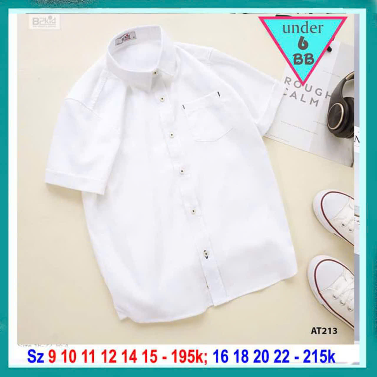 Áo sơ mi bé trai tay ngắn cao cấp màu trắng trơn sang trọng cho bé đi chơi , đi tiệc