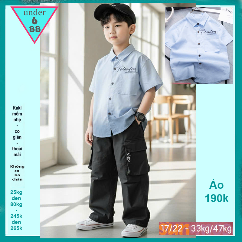 - Áo sơ mi tay tay ngắn cho bé 19kg đến 47kg