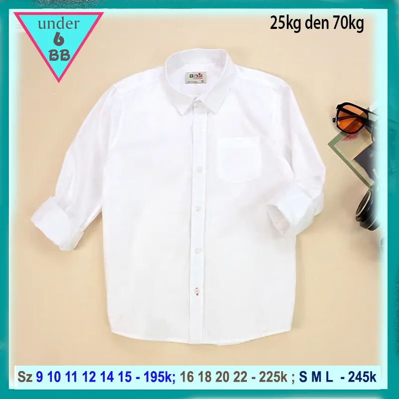 Áo sơ mi bé trai tay dài màu trắng trơn sang trọng cho bé đi chơi , đi tiệc