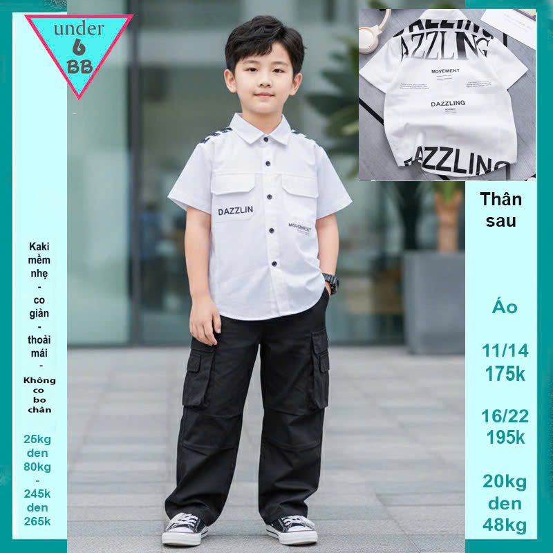 - Áo sơ mi tay tay ngắn cho bé 22kg đến 47kg