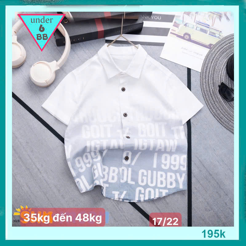 Áo sơ mi bé trai tay ngắn in chữ loang phong cách cực sang cho bé đi chơi ,du lịch
