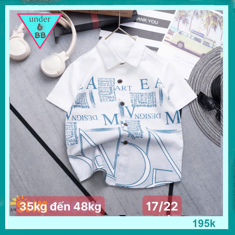 Áo sơ mi bé trai tay ngắn in chữ Cái phong cách cá tính cho bé đi chơi , đi tiệc