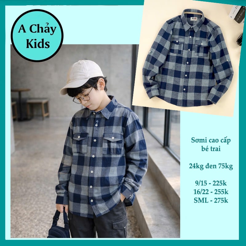 Áo sơ mi bé trai tay dài caro phong cách hàn quốc cực sang cho bé diện đi chơi , đi tiệc