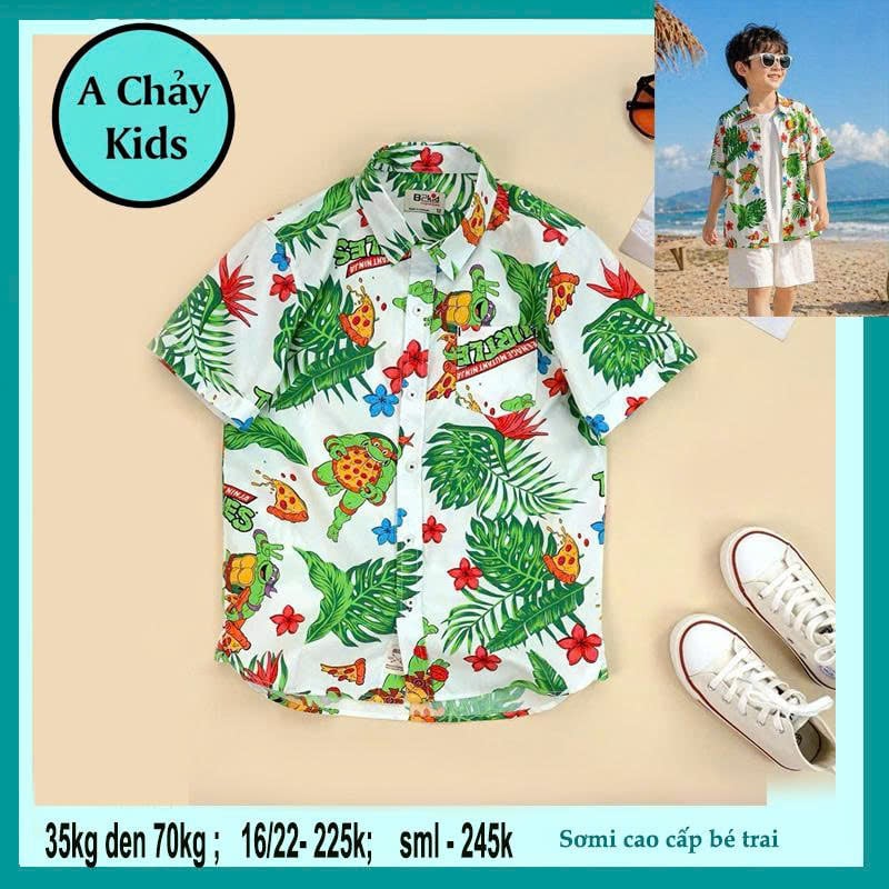 Áo sơ mi bé trai tay ngắn in chú Rùa phong cách năng động cho bé diện đi biển , du lịch