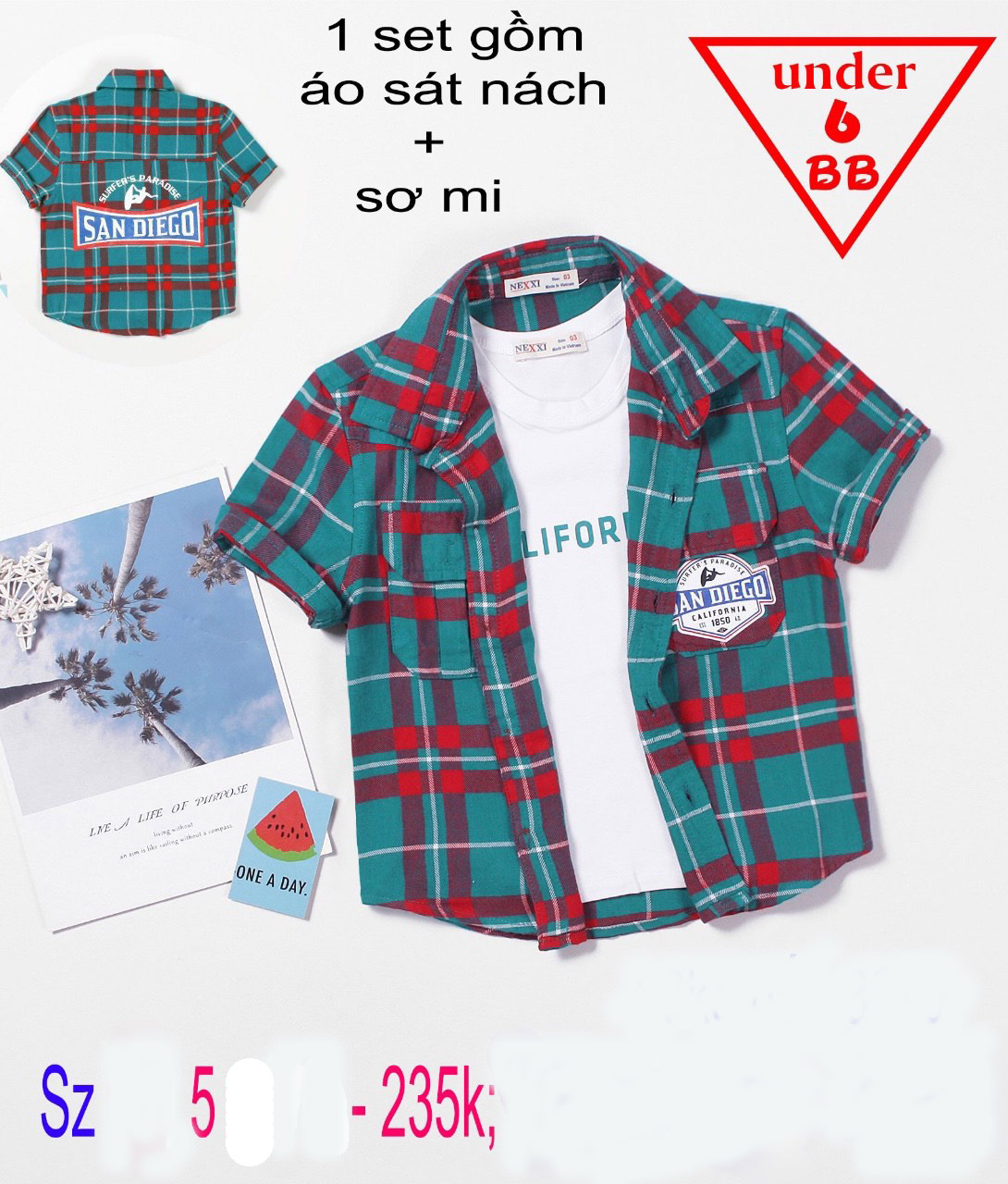 Áo sơ mi caro phối áo sát nách phong cách hàn quốc cho bé trai ( Áo sơ mi tay ngắn +áo thun sát nách )