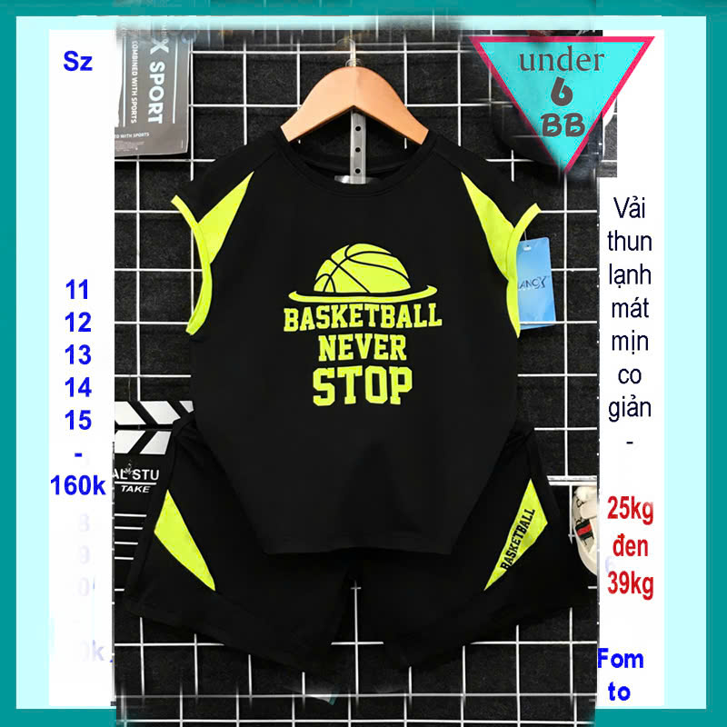 Đồ bộ bé trai thun lạnh sát nách thể thao in chữ phong cách bóng rổ cho bé đi chơi ,đi học