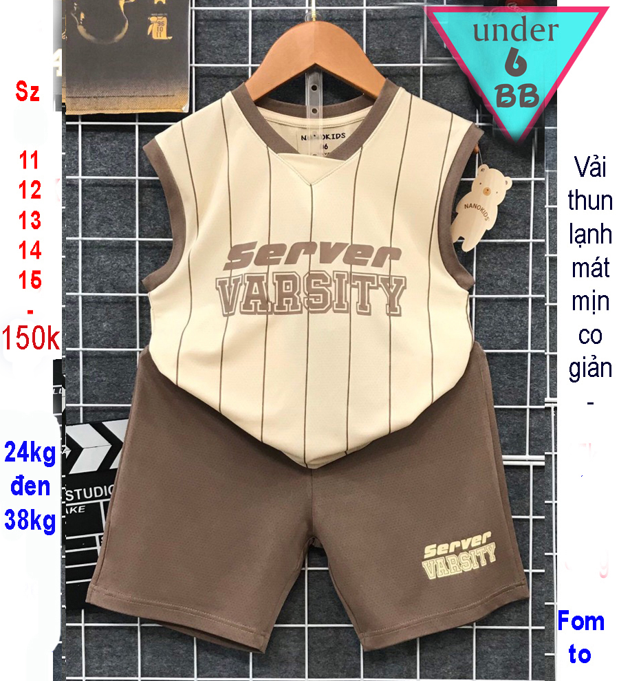 Đồ bộ bé trai thun lạnh sát nách thể thao in chữ phong cách bóng rổ cho bé đi chơi , đi học