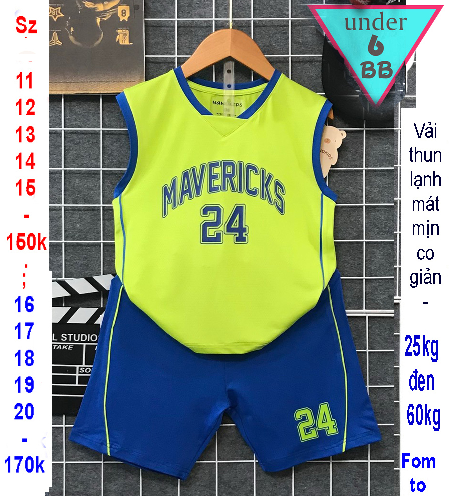 Đồ bộ bé trai thun lạnh sát nách thể thao in số 24 phong cách bóng đá cho bé đi chơi , đi học
