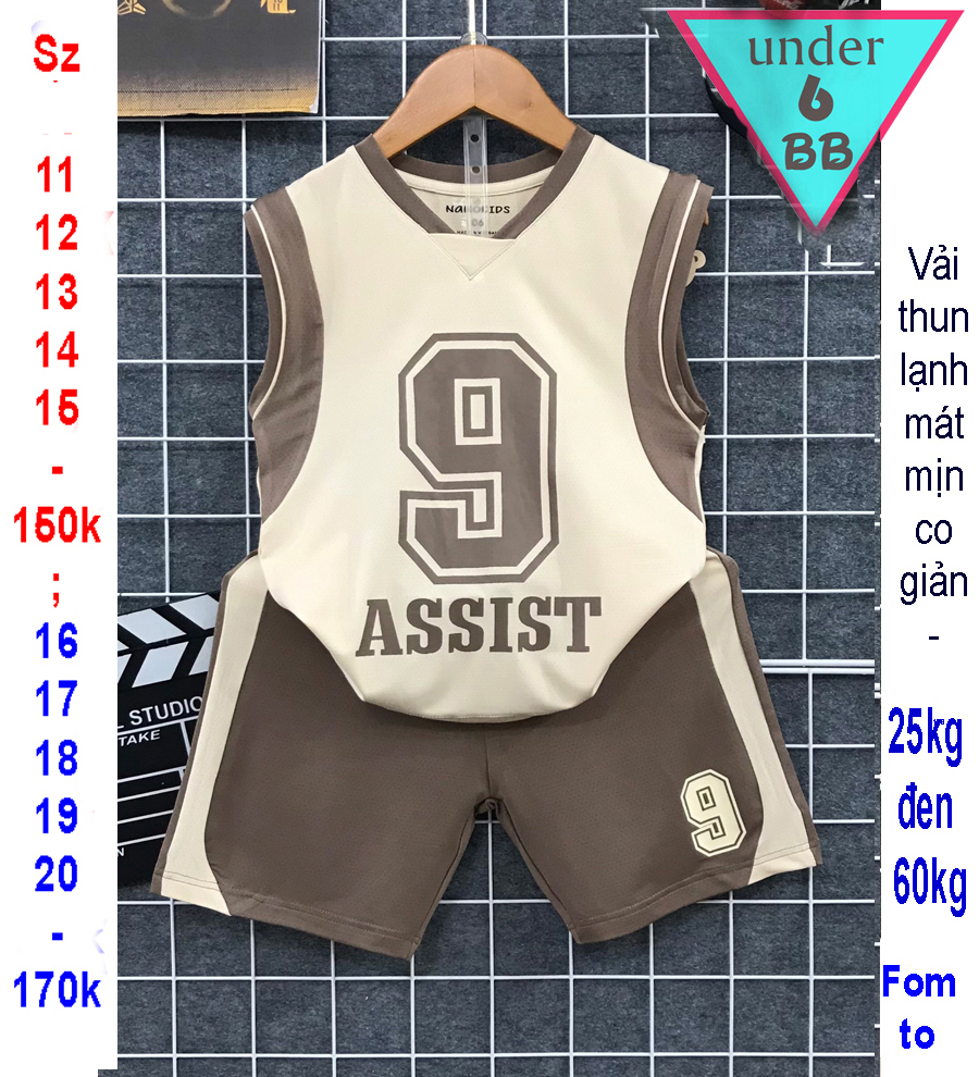 Đồ bộ bé trai thun lạnh sát nách thể thao in họa tiết số 9 cho bé đi chơi , đi học