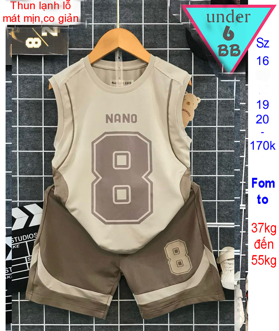 Đồ bộ bé trai thun lạnh sát nách thể thao in chữ số Nano 08 phong cách bóng rổ cho bé đi chơi , đi học