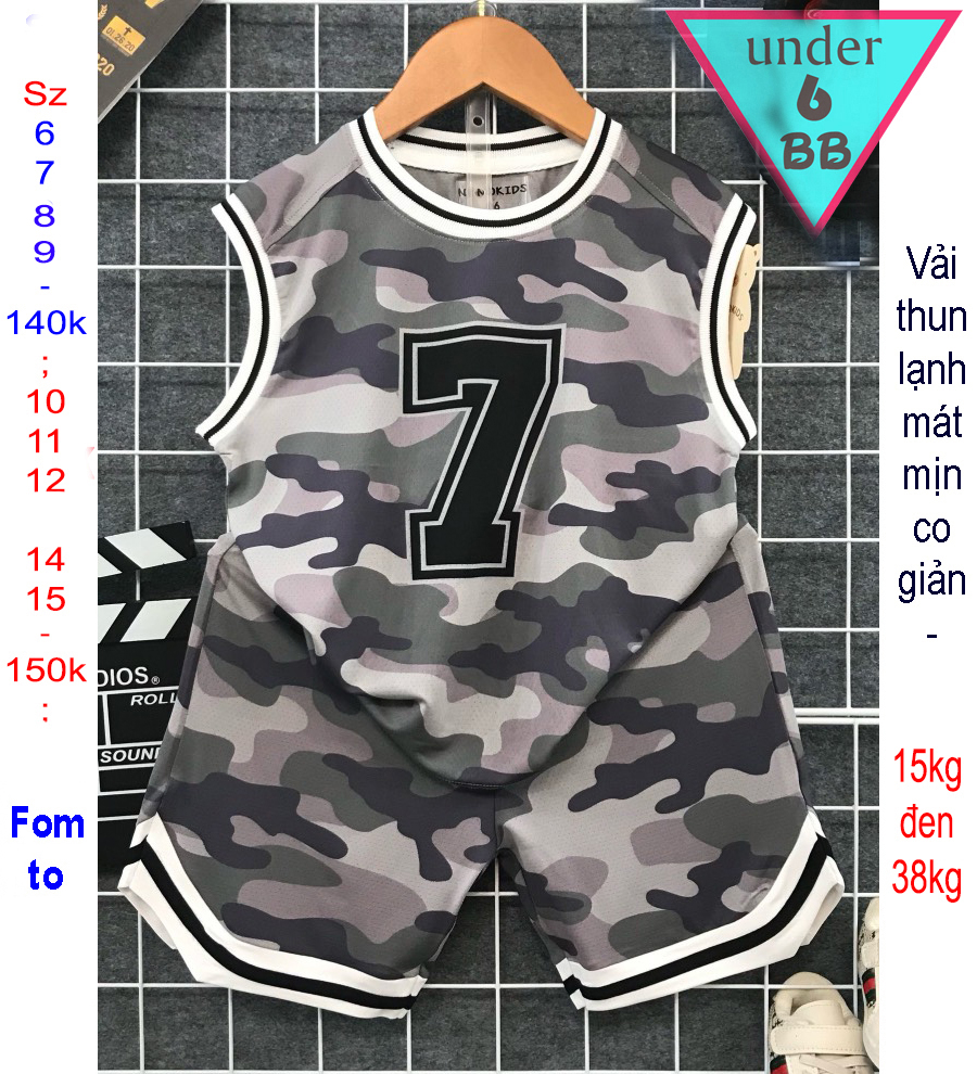 Đồ bộ bé trai thun lạnh sát nách thể thao in số 7 phối lính phong cách bóng đá cho bé đi chơi , đi học
