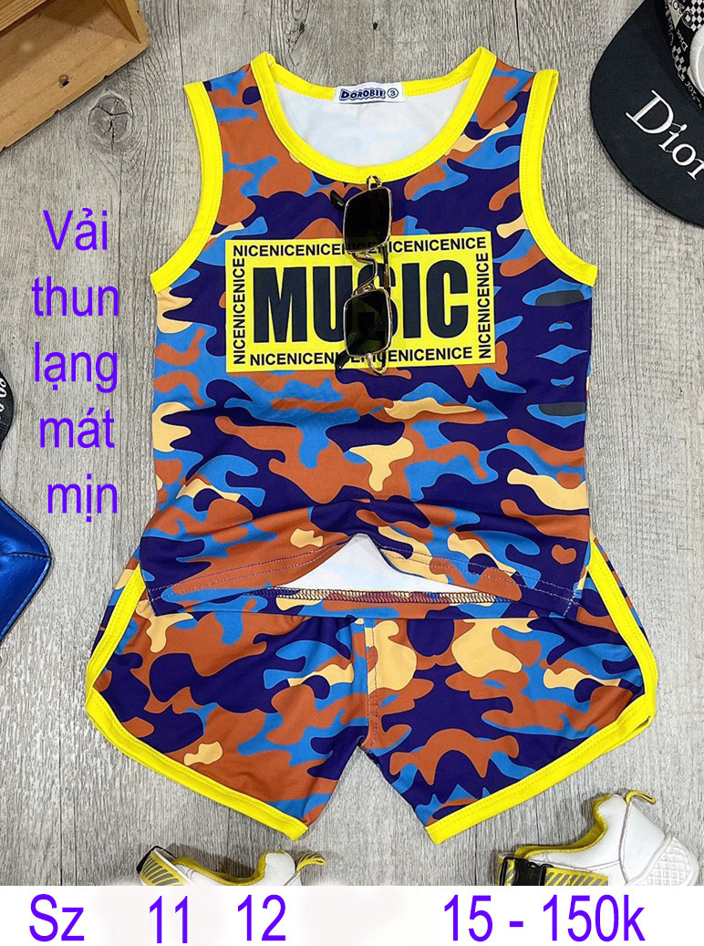 Đồ bộ bé trai thun lạnh sát nách thể thao phối lính phong cách bóng rổ cho đi chơi , đi học
