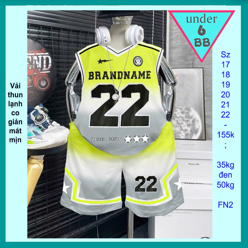Đồ bộ bé trai thun lạnh sát nách thể thao in số 22 phong cách bóng rổ cho bé đi chơi, đi học