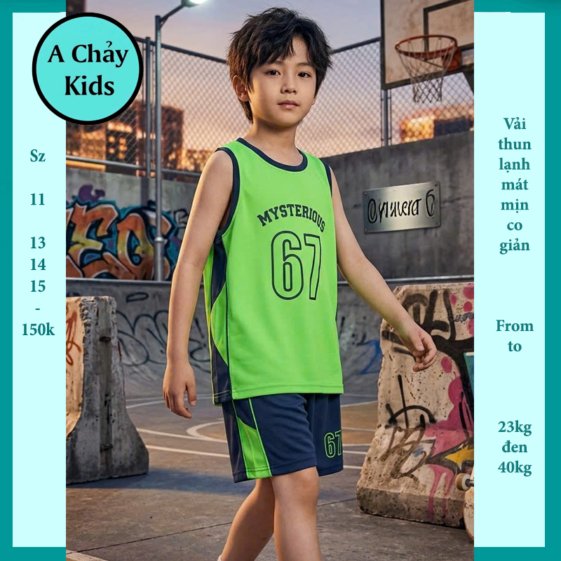 Đồ bộ bé trai thun lạnh sát nách thể thao in số 67 phong cách đá banh cho bé đi chơi , đi học