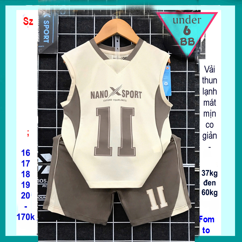 Đồ bộ bé trai thun lạnh sát nách thể thao in số 11 phong cách đánh cầu lông cho bé đi chơi , đi học