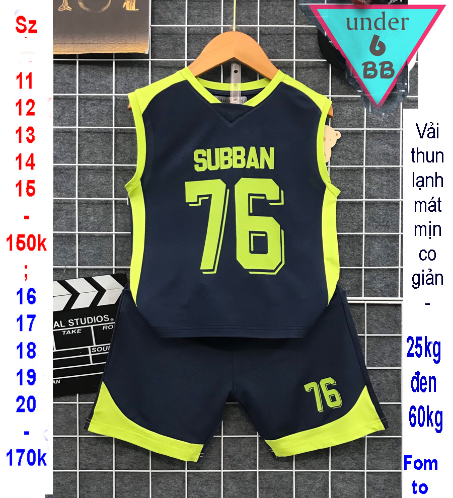 Đồ bộ bé trai thun lạnh sát nách thể thao in số 76 phong cách đá banh cho bé đi chơi , đi học