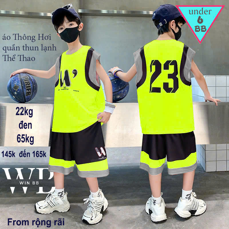 Đồ bộ bé trai thun lạnh sát nách thể thao in số 23 phong cách thời trang bóng rổ cho bé đi chơi , đi học