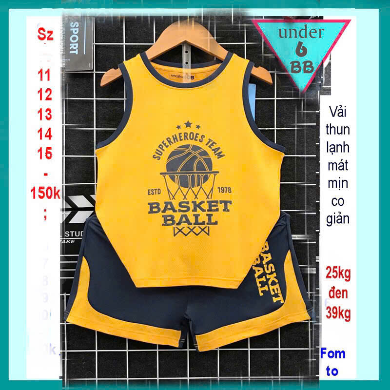 Đồ bộ bé trai thun lạnh sát nách thể thao in chữ phong cách bóng rổ cho bé đi chơi, đi học