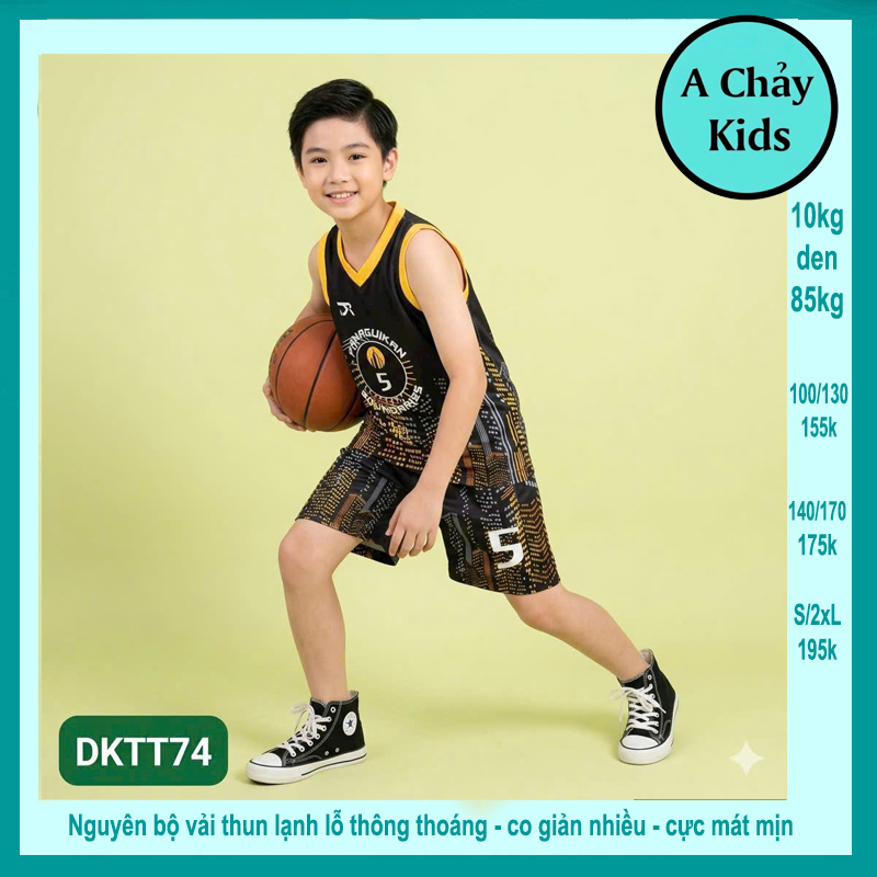 Đồ bộ bé trai thun lạnh sát nách thể thao in số 5 phong cách bóng rổ cho bé đi chơi , đi học