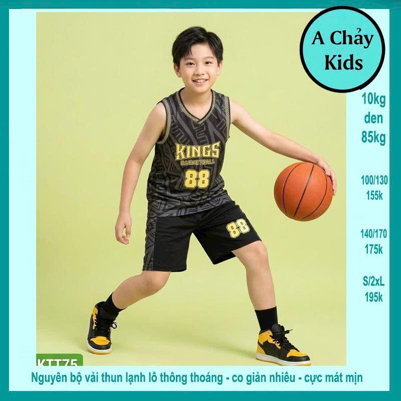 Đồ bộ bé trai thun lạnh sát nách in 3D số 88 phong cách bóng rổ cho bé diện đi chơi , đi học