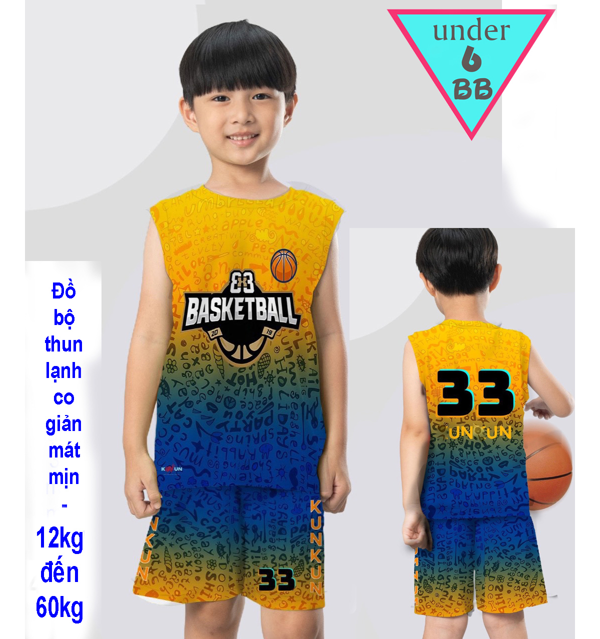 Đồ bộ bé trai thun lạnh sát nách in số 33 mang phong cách thể thao bóng rổ cho bé đi chơi , đi học