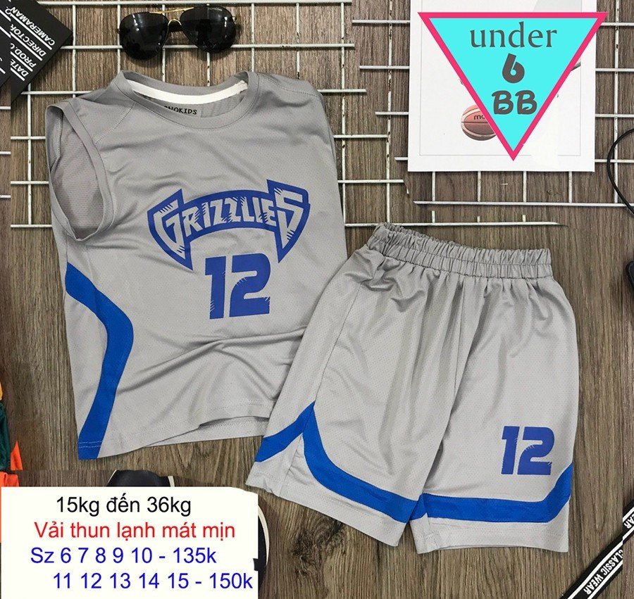 Đồ bộ bé trai thun lạnh sát nách in số 12 phong cách thể thao cho bé trai đi đi chơi , đi học