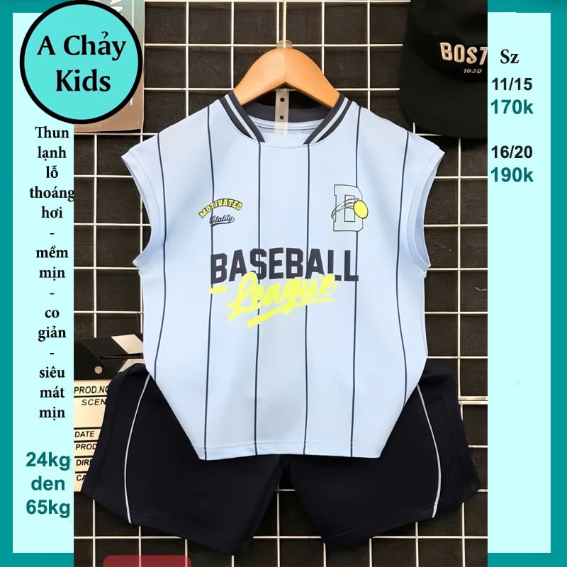 Đồ bộ bé trai thun lạnh sát nách in chữ BASEBALL phong cách thể thao cho bé đi chơi , đi học
