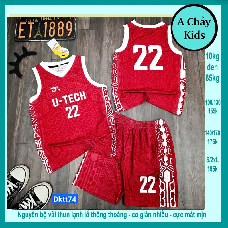 Đồ bộ bé trai thun lạnh sát nách thể thao in số 22 phong cách bóng rổ cho bé đi chơi , đi học