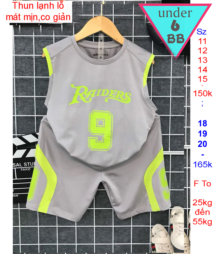 Đồ bộ bé trai thun lạnh sát nách thể thao in chữ số Raiders 9 phong cách bóng rổ cho bé đi chơi , đi học