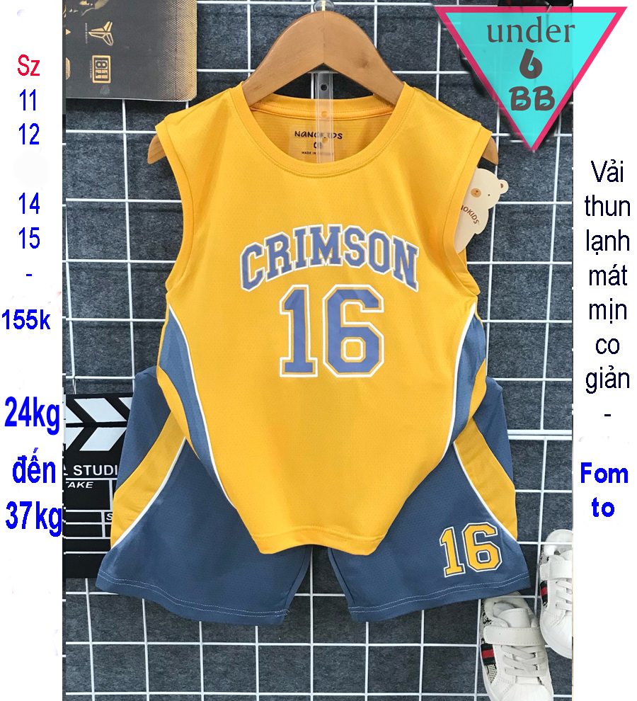 Đồ bộ bé trai thun lạnh sát nách thể thao in số 16 mang phong cách bóng rổ đi chơi , đi học
