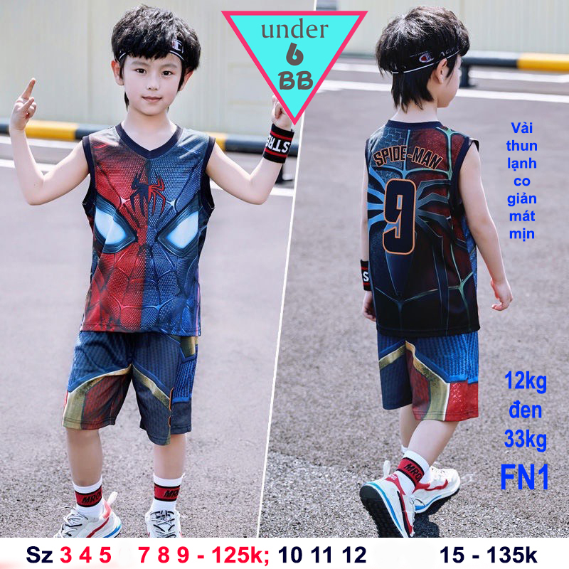 Đồ bộ bé trai thun lạnh sát nách thể thao in họa tiết hình siêu nhân người nhện cho bé đi chơi , đi học