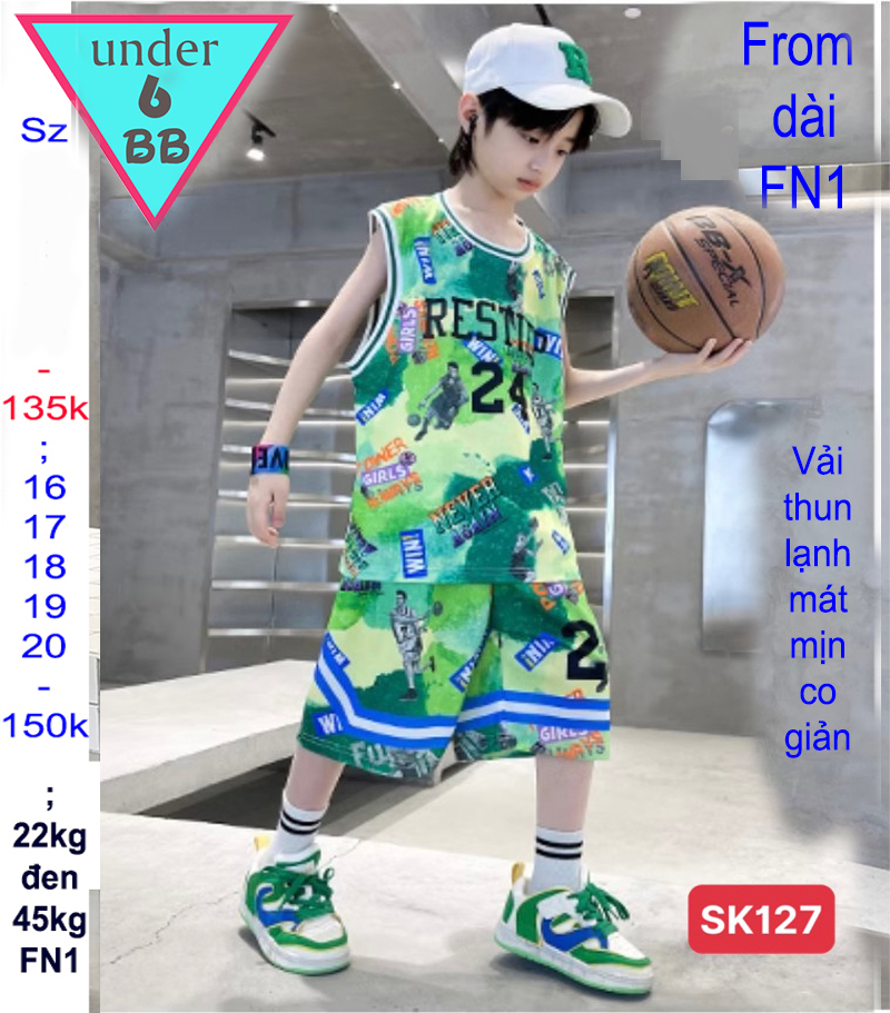 Đồ bộ bé trai thun lạnh sát nách thể thao in số 24 theo style bóng rổ cho bé đi chơi , đi học