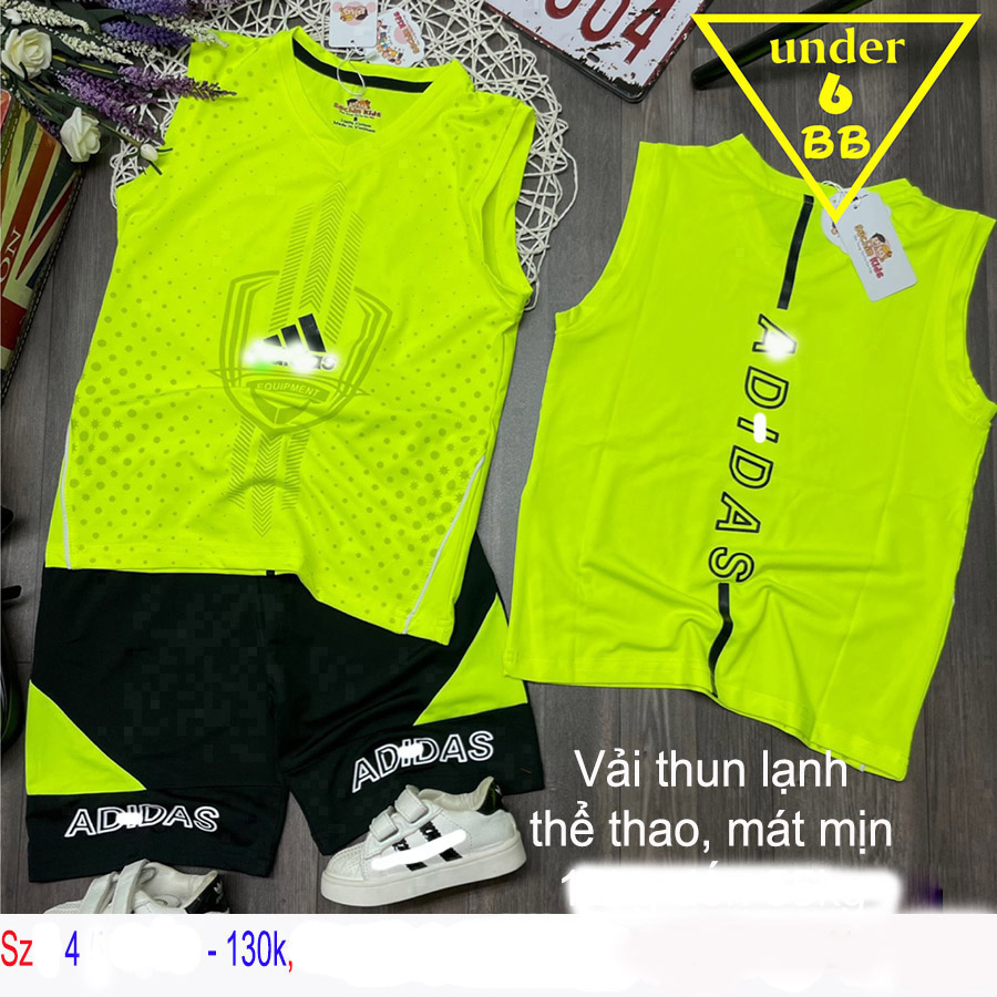 Đồ bộ bé trai thun lạnh sát nách thể thao in họa tiết chữ cho bé đi chơi , đi học