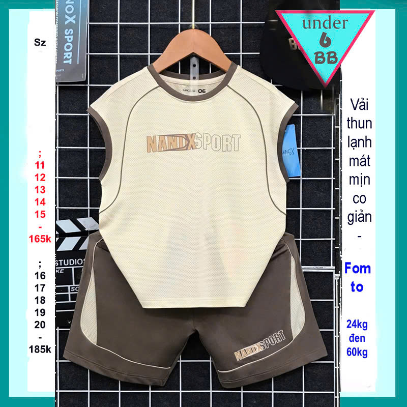 Đồ bộ bé trai thun lạnh sát nách thể thao in chữ mang style bóng rổ cho bé đi chơi , đi học