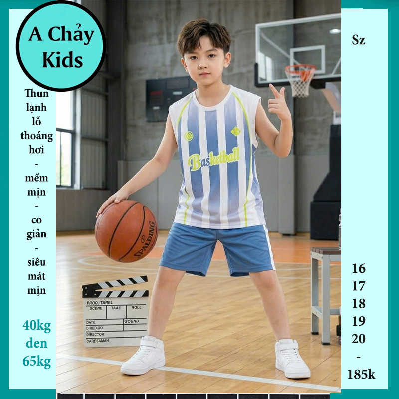 Đồ bộ bé trai thun lạnh sát nách in chữ Basketball phối sọc phong cách bóng rổ cho bé đi chơi , đi học