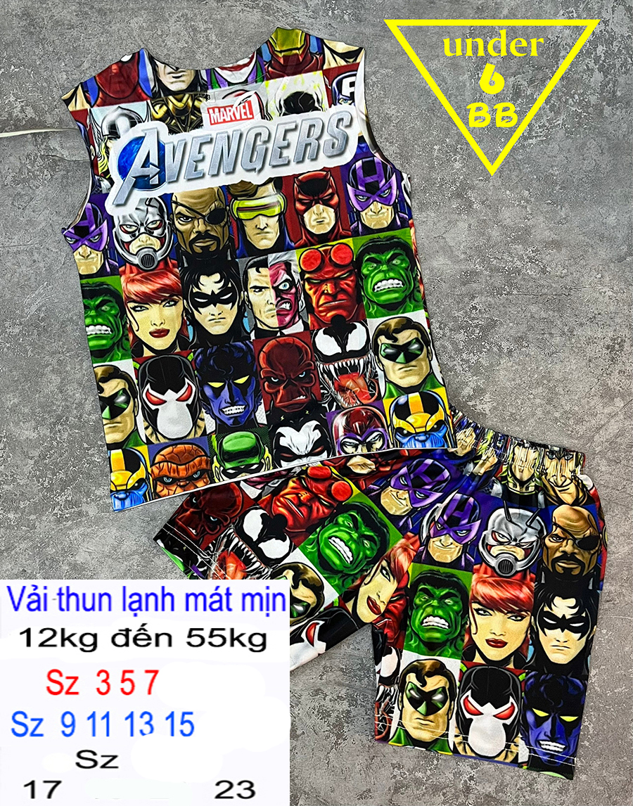 Đồ bộ bé trai thun lạnh sát nách in 3D biệt đội siêu anh hùng cho bé đi học