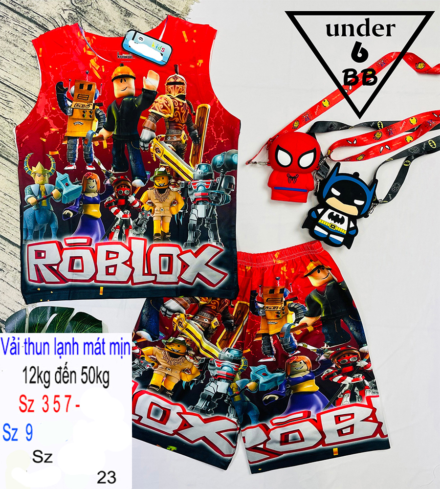 Đồ bộ bé trai thun lạnh sát nách in 3D hình Roblox cho bé đi học