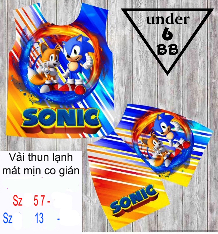 Đồ bộ bé trai thun lạnh sát nách in hình 3D Sonic cho bé đi học